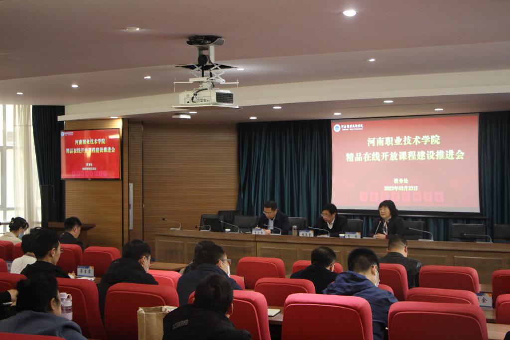 3月23日下午,河南职院召开精品在线开放课程建设推进会。校长梅乐堂、副校长肖珑出席会议。教务处和各教学单位相关负责人,各省级、校级精品在线开放课程负责人参会。肖珑主持会议。