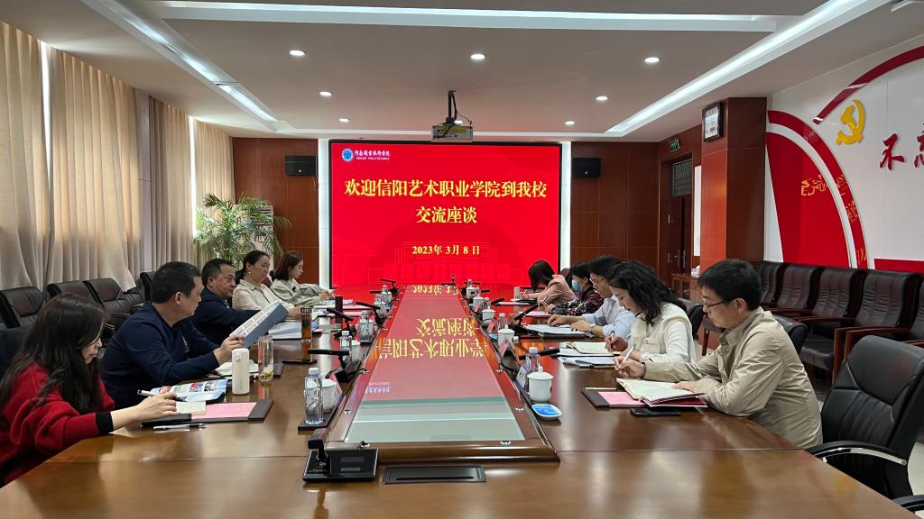 3月8日下午,信阳艺术职业学院党委委员、副校长兰金刚带队来校交流学工、财务及共青团工作。工会主席夏喜利出席座谈会。学生处、财务处和团委等相关部门负责人参会。