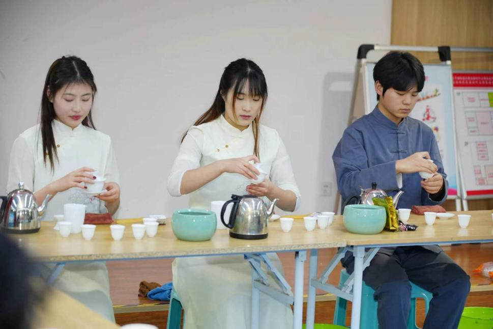 校团委联合文化旅游学院团总支组织师生志愿者赴知启街社区开展“茶香进社区,文化润人心”大学生志愿服务活动。活动现场,志愿者们用精彩的茶艺表演为社区居民讲解功夫茶的冲泡技巧和中国茶文化,带领社区小朋友体验为非遗泥塑涂色,通过茶艺展示、非物质文化遗产互动体验,汉服礼仪知识讲解等形式,让广大居民近距离接触中华优秀传统文化,感受非遗文化的魅力。