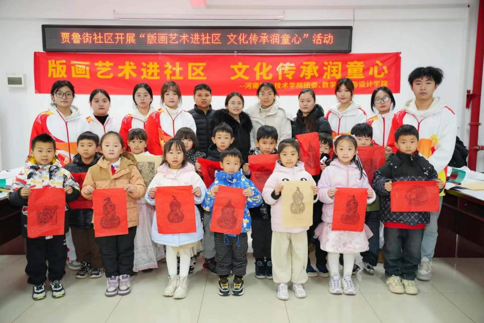 校团委联合数字创意与设计学院团总支组织师生志愿者赴郑东新区贾鲁街社区育翔小区开展“版画艺术进社区,文化传承润童心”志愿服务活动。志愿者们用生动易懂的语言为孩子们讲解了什么是版画、版画创作的工具、材料和基本的用刀方法、制作过程等内容。龙子湖幼儿园和育翔幼儿园的孩子在志愿者的带领下共同探索版画奥秘,开启版画初体验,弘扬中华传统文化。
