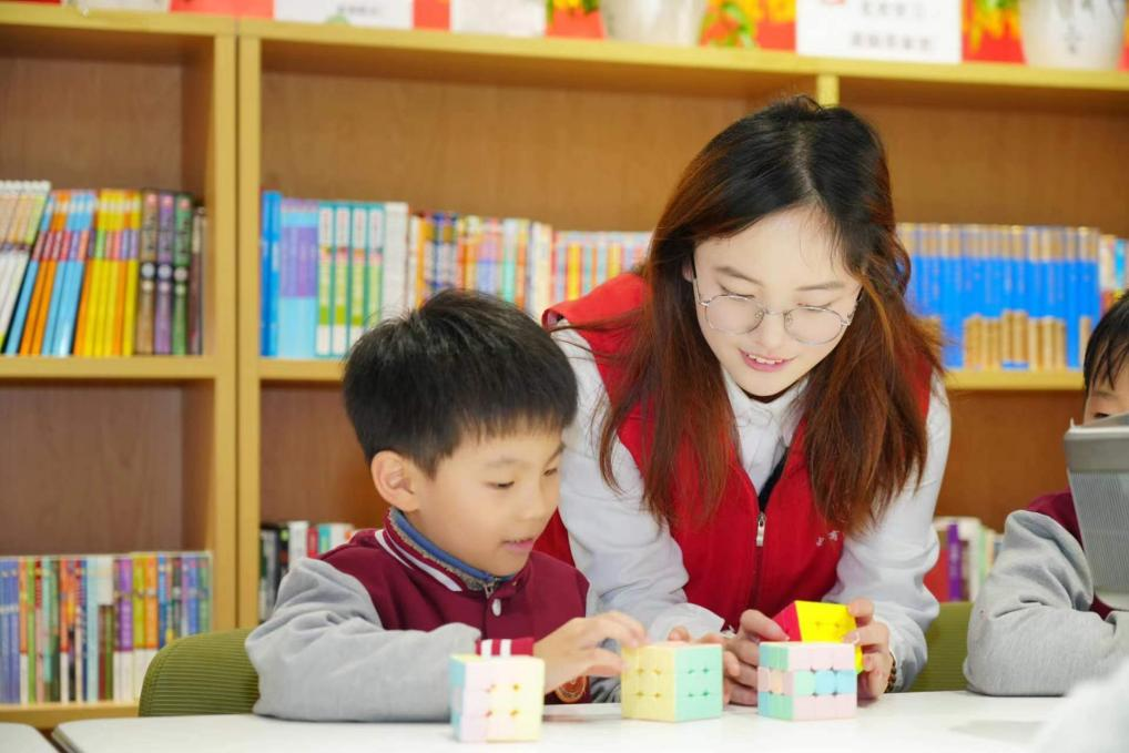 小魔方,大智慧。校团委联合电商物流学院团总支牵手郑东新区明德街社区幼儿园,在郑品书舍举办了“碰撞思维火花,闪动指尖智慧”庆元旦公益魔方教学活动。志愿者们生动、详尽地介绍了魔方的历史和种类,引导孩子们观察魔方结构及特点,示范讲解魔方还原技巧,极大地激发了现场小朋友们的兴趣和求知欲。