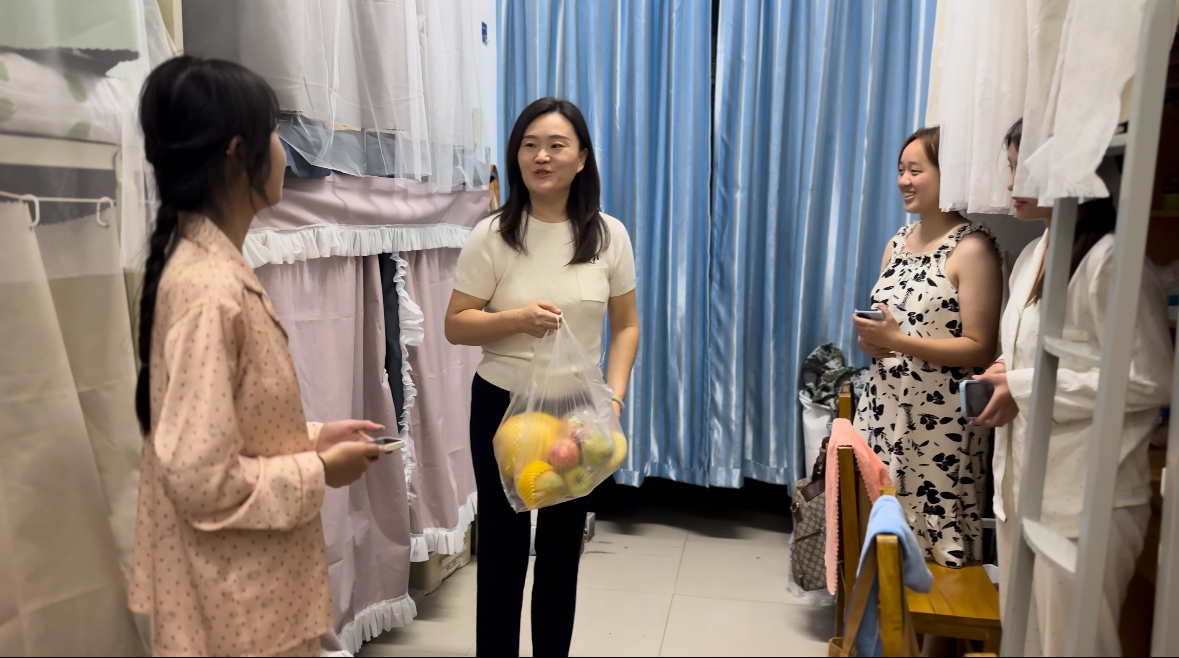 9月16日晚,数字创意与设计学院党总支书记徐海燕深入新生宿舍,看望慰问新生,并为新生代表发放了月饼、水果等慰问品。党总支副书记田景娜及全体新生辅导员参加此次活动。