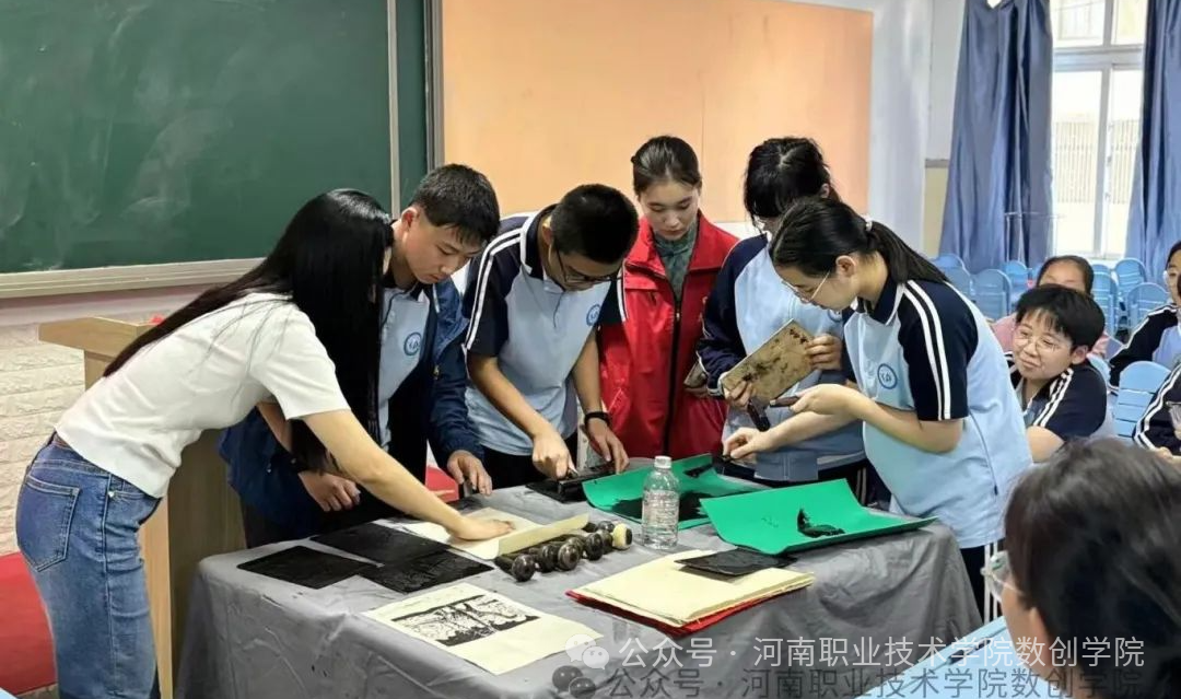 为了在宣讲活动中增加同学们的体验感,宣讲结束后宣讲团还为同学们准备了版画制作互动环节,让同学们亲自动手印制版画,体验中华优秀传统文化。