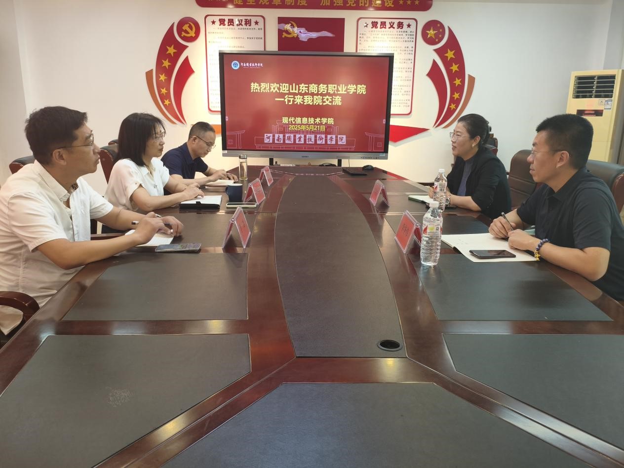 5月21日上午,山东商务职业学院信息工程学院院长高晓燕一行来到学校现代信息技术学院,就专业建设、中外合作办学等事项开展深入交流。现代信息技术学院党总支书记、院长李纪云及相关教研室教师代表参加了座谈会。