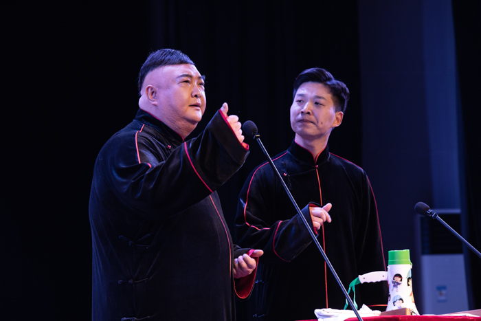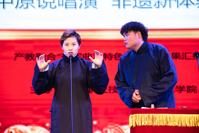 此次展演节目涉及快板、相声、小品、国风弹唱等题材,学生们以优秀的专业技能精彩演绎着每一个作品,展示着传统文化的博大精深,同时也展现了学生扎实的舞台功底,幽默风趣的相声、适用于全民健身的戏曲韵律舞蹈,赢得观众阵阵掌声。特别是曲艺表演艺术家范军主席和徒弟明男男的相声更是给大家带来了欢声笑语,将展演活动推向了高潮。