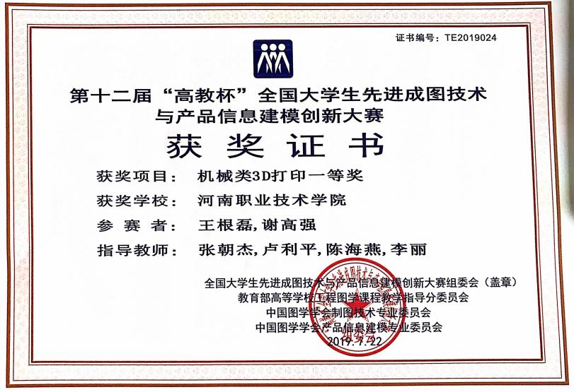 “高教杯”全国大学生先进成图技术与产品信息建模创新大赛由教育部高等学校工程图学教学指导委员会、中国图学学会制图技术专业委员会和中国图学学会产品信息建模专业委员会联合主办,是国内图学类课程最高级别的“国家级”赛事,被誉为“图学界的奥林匹克”。