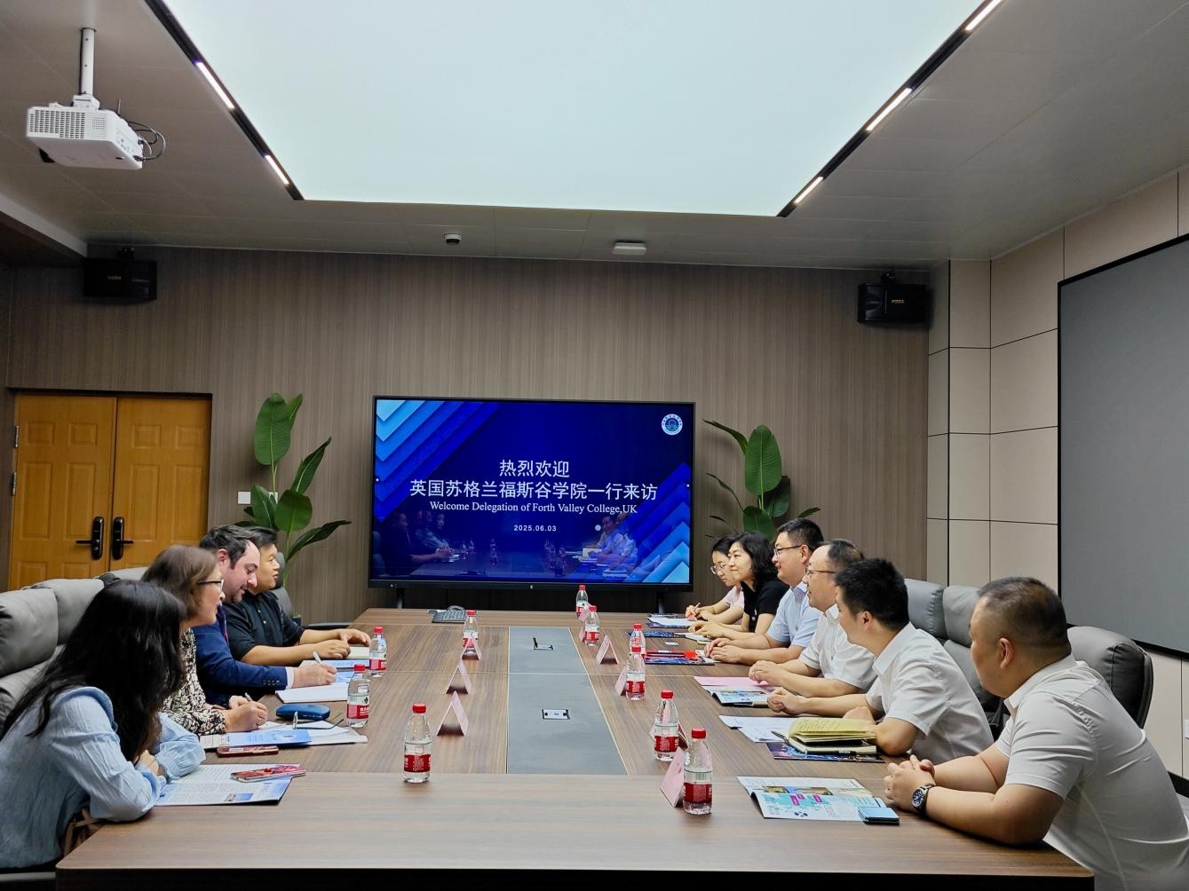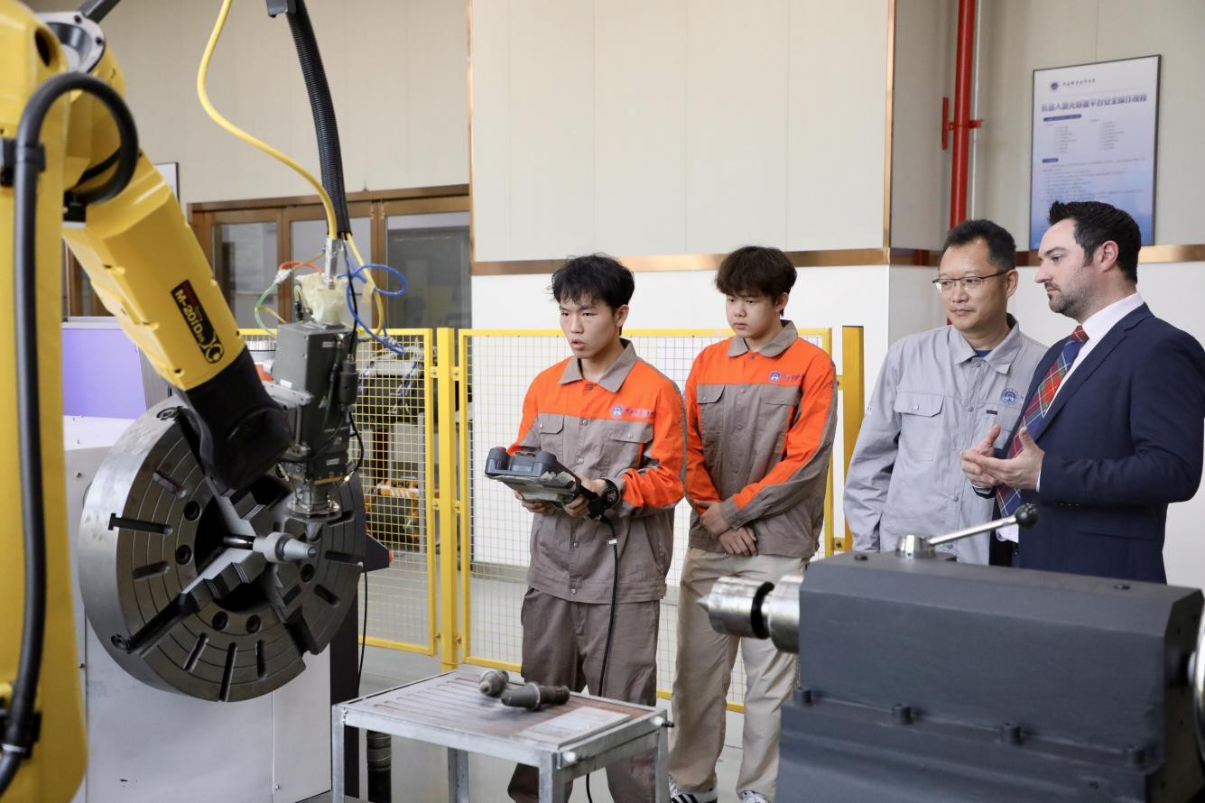 鲁冬在致辞中代表学校对代表团的来访表示热烈欢迎,并简要介绍了学校在人才培养、国际交流与合作、中外合作办学等方面的情况。他表示,英国苏格兰福斯谷学院作为全球领先的技能与创新教育标杆,在职业教育领域享有盛誉。两校在培养理念和培养方式上高度契合,期待以此次交流为契机,与福斯谷学院在专业建设、师资培训、学生交流等领域深化合作,共同探索职业教育人才培养新模式。