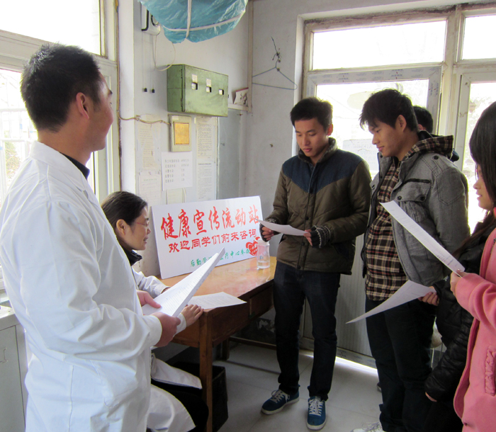 后勤管理处组织学院医疗中心从 12月3日开始,在全院开展为期一个月的义务健康咨询服务活动。医务人员走进学生宿舍,主动为学生提供义诊服务,对学生在日常生活中遇到的身体健康方面的咨询问题给予解答和说明,并通过板报、条幅等形式宣传流感、肺结核等冬季常见传染性疾病的预防措施和方法,提高师生的自我保健意识和防病能力。