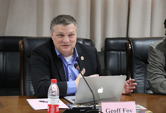 随后,Geoff Foy副校长从院校历史、专业特色、教育定位、教学模式、留学渠道、文化交流等方面详细介绍了路德大学的情况,并与在座的二级学院负责人交流了赴美留学的条件和途径,特别介绍了路德大学也成为学院中外合作办学项目的又一所可选择的海外进修学校。最后,双方还就教师进修,学位获取方式和孔子学院师资配备等细节问题进行了讨论,纷纷表示此次会面极大地拉近了彼此的关系,都为对方在教育教学方面的优势所深深吸引,未来双方一定会在更多的层面上进行更广泛的合作。