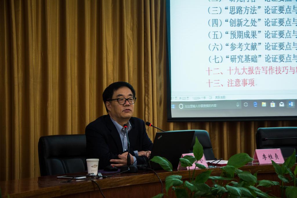 讲座上,陈玉仑教授根据多年分管中央国家机关在京各单位国家社科基金项目申报管理及组织评审工作的经验,结合高校实际和国家社科基金项目近年来申报情况,详细解读了2017年国家社科基金年度项目立项情况、实施过程、评审关注点,以及国家社科基金项目和教育部人文社科项目设置申报规律、条件、要求和重要信息提要。结合已成功申报项目的范例,他详细阐述了国家社科基金项目分类、申报人员条件、申报要点、《申请书》填写范式、《活页》填写范式、如何选题、如何提炼选题、如何论证以及申报其他注意事项等内容。在长达近7个小时的讲座中,陈玉仑教授的讲解厘清了教师们课题申报的模糊认识,解决了教师们申报书填写过程中存在的实际问题,增强了老师们申报国家社科基金项目的信心。