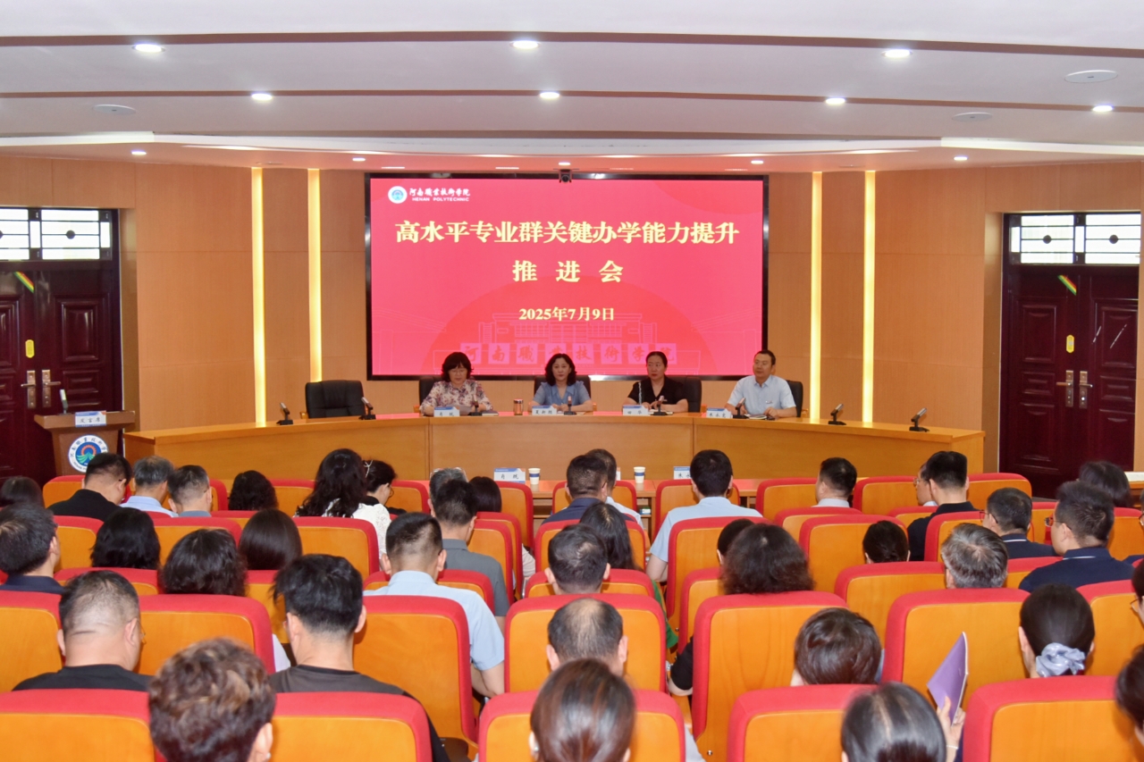近日,学校在勤业楼239会议室召开高水平专业群关键办学能力提升推进会。校党委副书记、校长夏新颜,校党委副书记、工会主席田华,校党委委员、副校长朱永宽出席会议。相关职能部门负责人、各教学单位领导班子成员及教研室主任参加会议。会议由校党委委员、副校长肖珑主持。