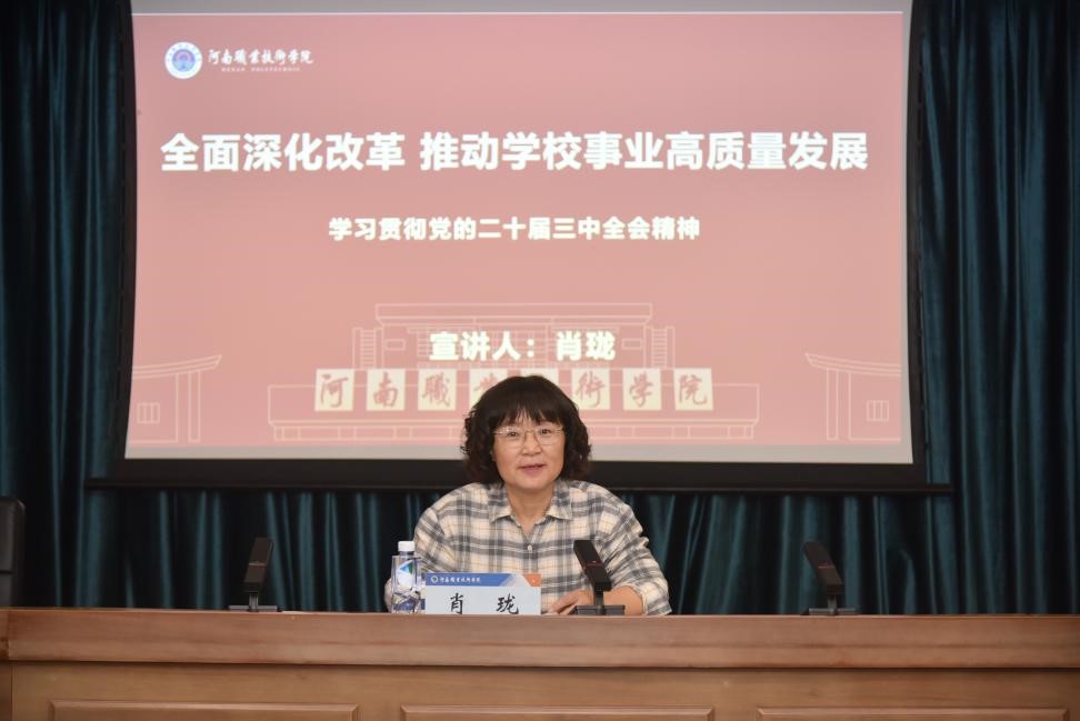 为深入学习宣传贯彻党的二十届三中全会精神,根据校党委统一部署,10月10日下午,河南职院学习贯彻党的二十届三中全会精神“笃行”宣讲团成员、副校长肖珑为分管联系单位宣讲党的二十届三中全会精神。发展规划处、教务处、基础教学部、综合实训中心、督导办公室、招标采购中心和智能制造学院等7个单位干部职工参加宣讲会。