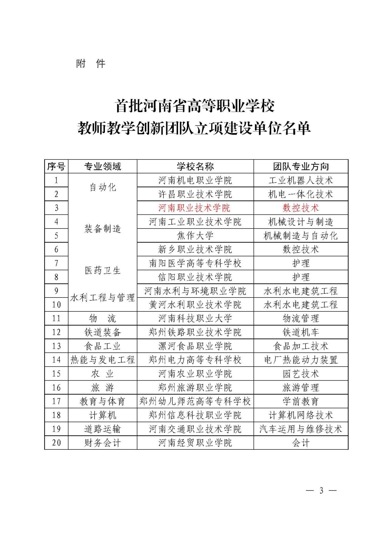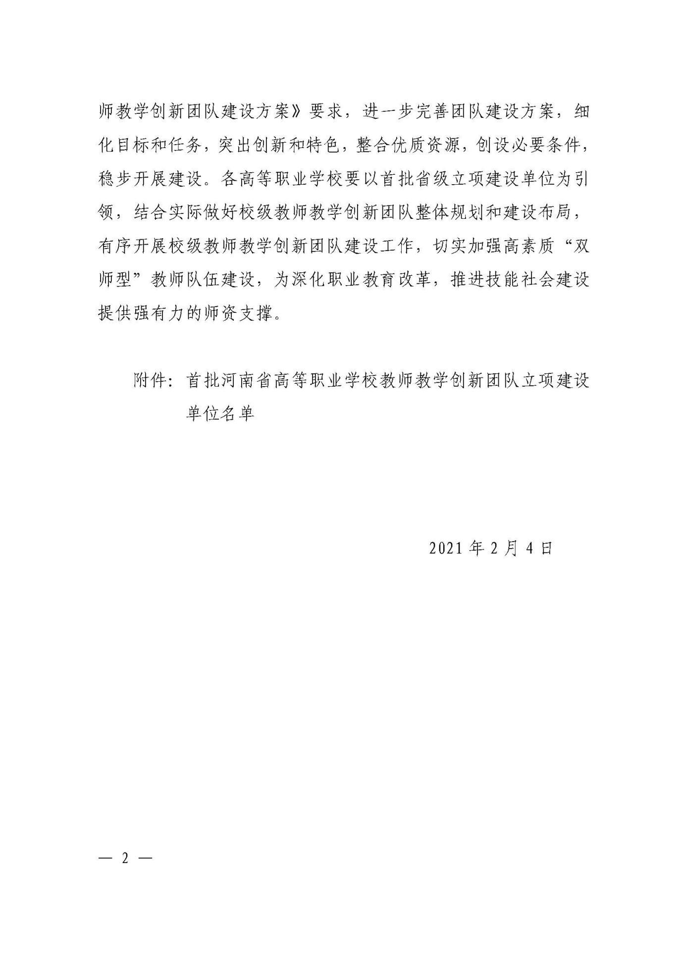 2021年2月,学校数控技术专业获批“河南省高等职业学校教师教学创新团队”立项建设单位。