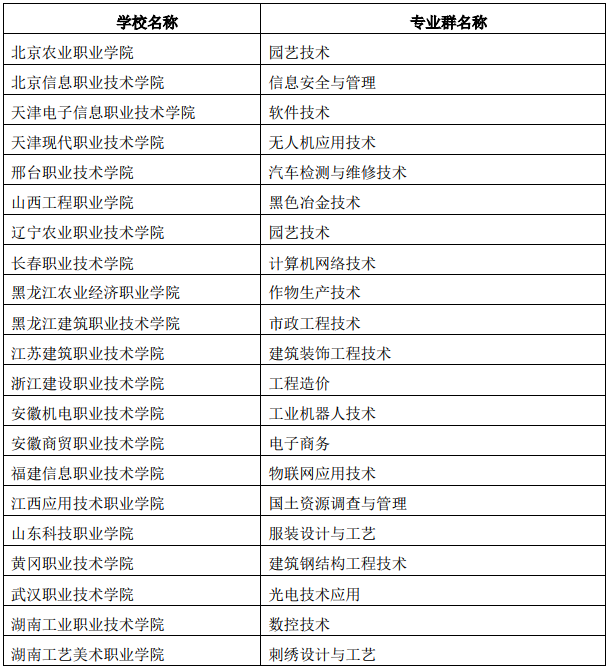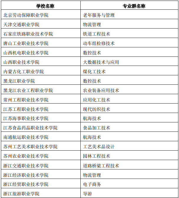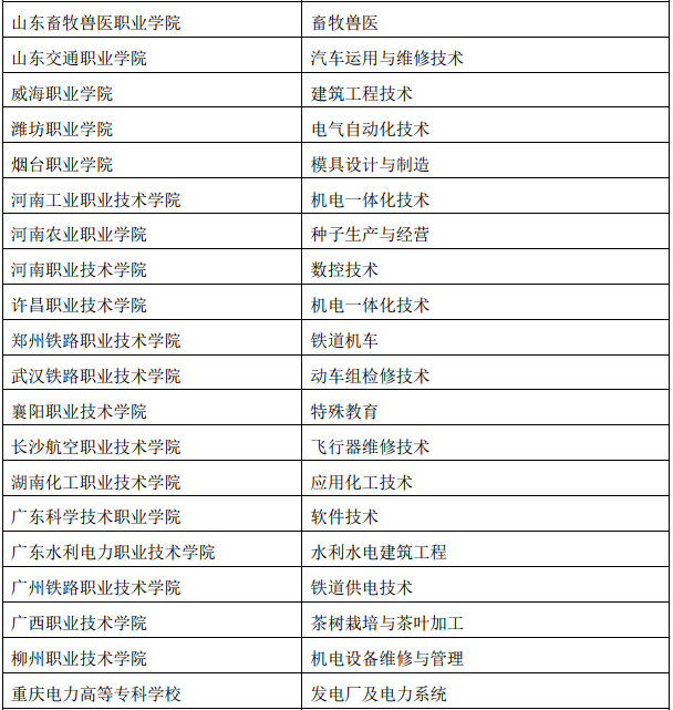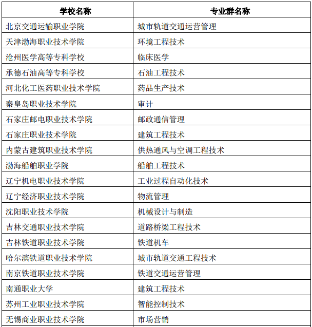 中国特色高水平高职学校和专业建设计划建设单位名单