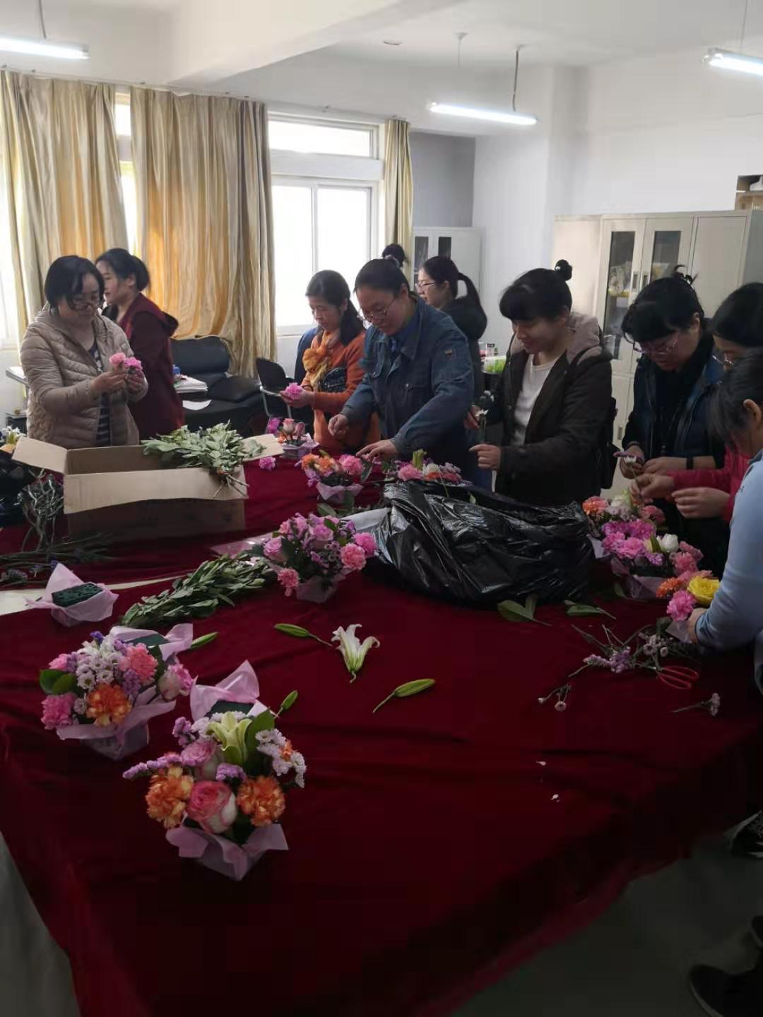 迟日江山丽,春风花草香。在这生机盎然的时节,为了庆祝“三八”妇女节,丰富女教工的业余文化生活,3月7日下午,机电工程学院在综合楼5楼举行了艺术插花活动,全院女教工欢聚在520,把这里变成了欢乐的海洋,花香与书香相融,欢声与笑语齐飞。