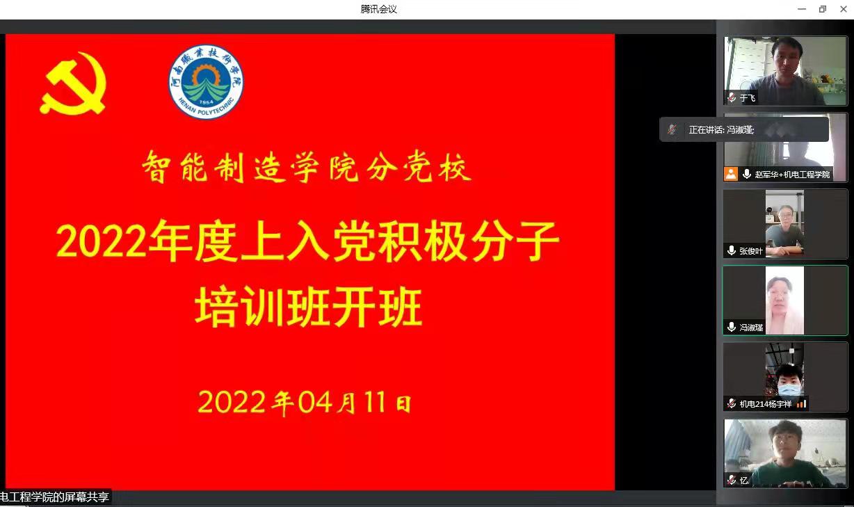 2022年4月11日,智能制造学院通过线上腾讯会议的方式举办智能制造学院分党校2022年上半年积极分子培训开班暨党课专题讲座。