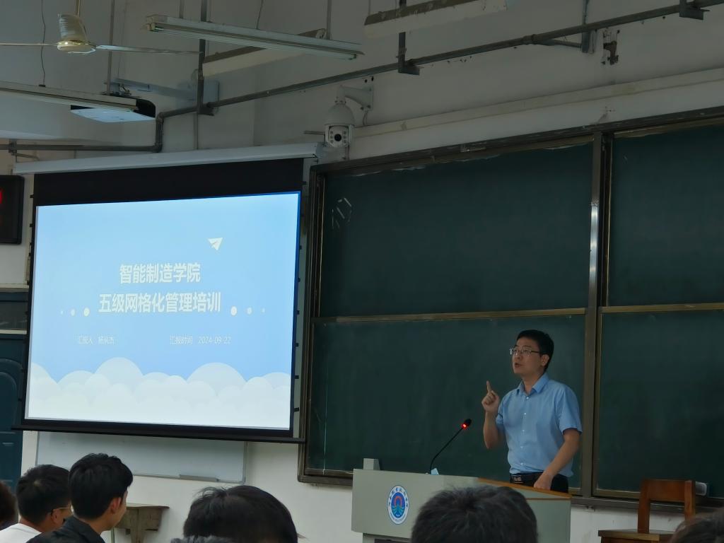 9月22日,智能制造学院学生管理五级网格化培训会在1101教室顺利举行。本次培训会由杨从杰老师主讲,学院党总支书记姚晓辉、党委学生工作部副处长陈昕志等老师、全体2024级五级网格长共200余人参加。
