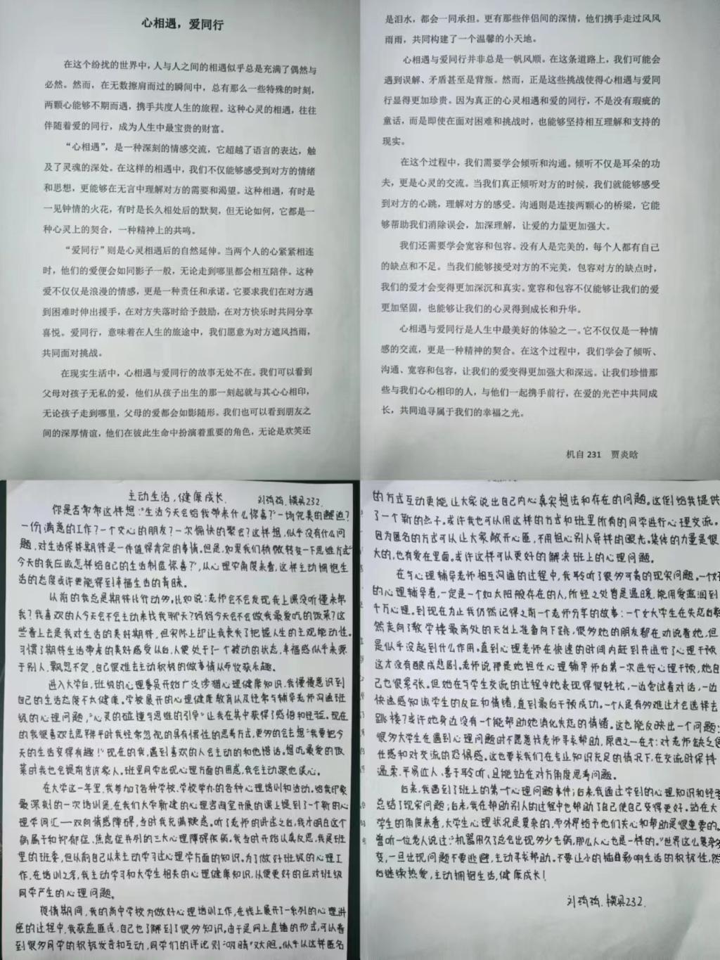 本次大赛吸引了众多同学积极参与,通过文字表达了他们对于心理问题的深刻理解与独到见解,传递出向上向善的精神力量,同时也反映出我院同学积极乐观、健康向上的心理观和价值观。经评审,最终有十篇优秀作品脱颖而出。