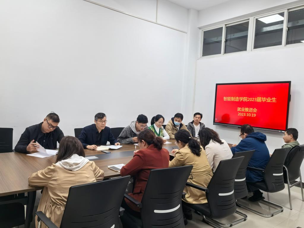 2023年10月19日下午,智能制造学院召开了2023届毕业生就业推进会。党总支书记赵军华、副书记张俊叶、就业专干阿尔曼以及2023届全体辅导员和各教研室主任参加了会议。
