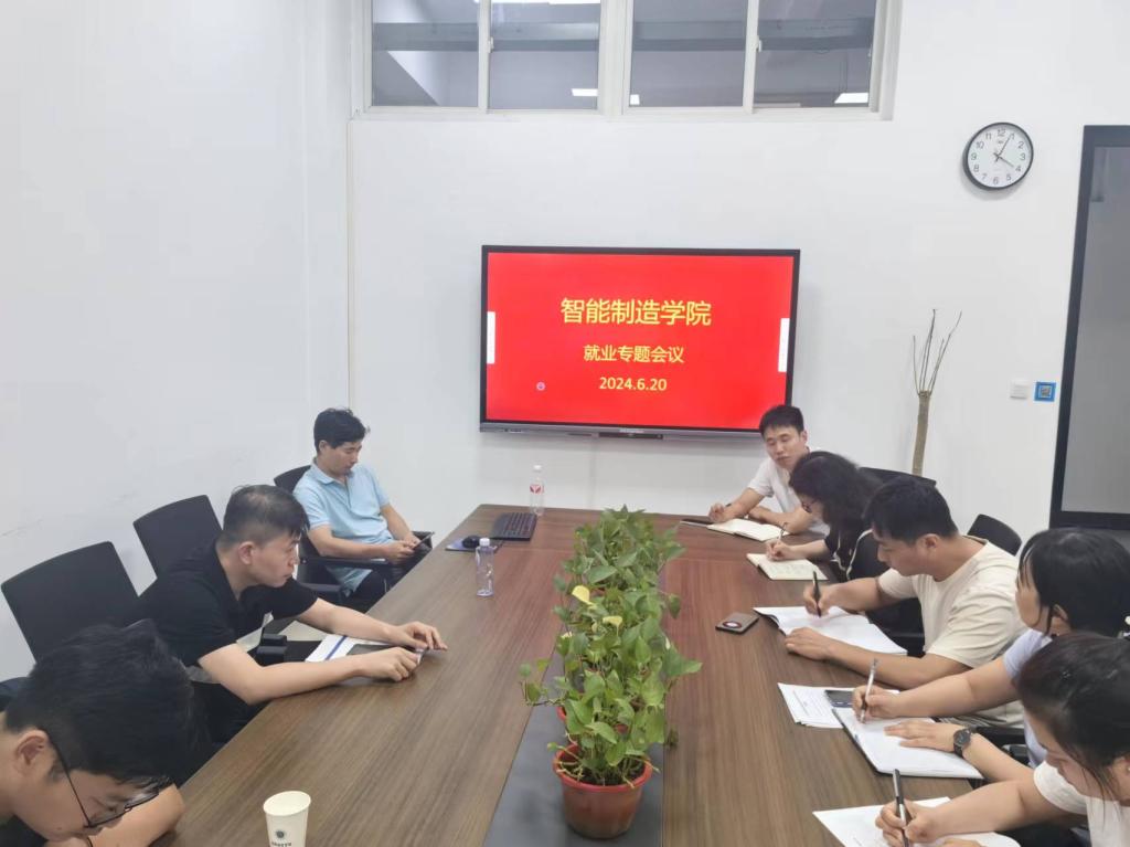 6月20号智能制造学院在智行楼302东会议室开展就业推进会,智能制造学院党总支书记赵军华、副书记张俊叶、就业专干、毕业班辅导员,共13人参加会议。