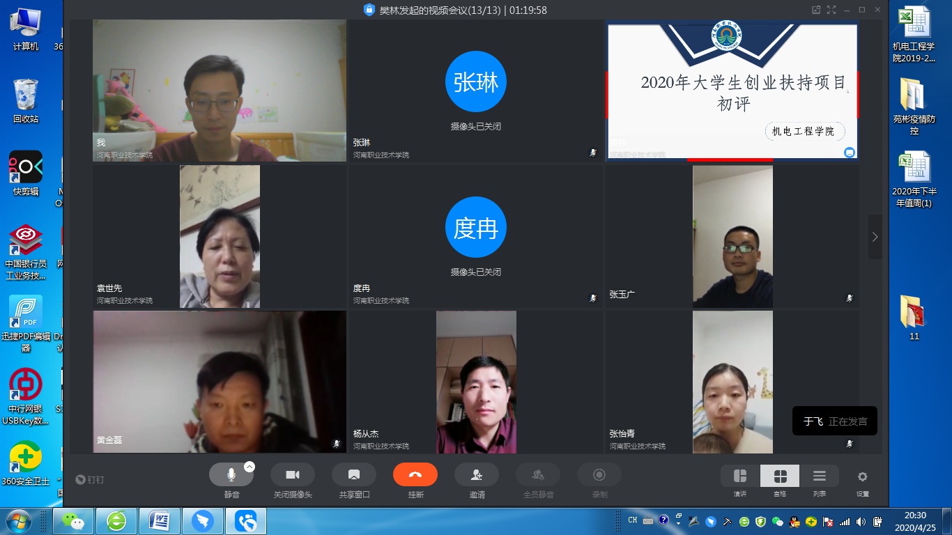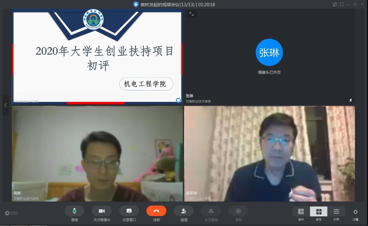 为激发我院学生创新活力,鼓励和引导更多学生自主创业,依据《河南职业技术学院帮扶大学生创新创业实施办法》(院字〔2016〕50号)、《关于评选2020年大学生创业扶持项目的通知》,2020年4月25日,机电工程学院召开2020年“大学生创业扶持项目”评审专项会议,会议在钉钉平台举行,由创业专项负责人樊林发起并主持,机电工程学院党总支书记袁世先、副书记赵军华及全体专兼职辅导员参加了会议。