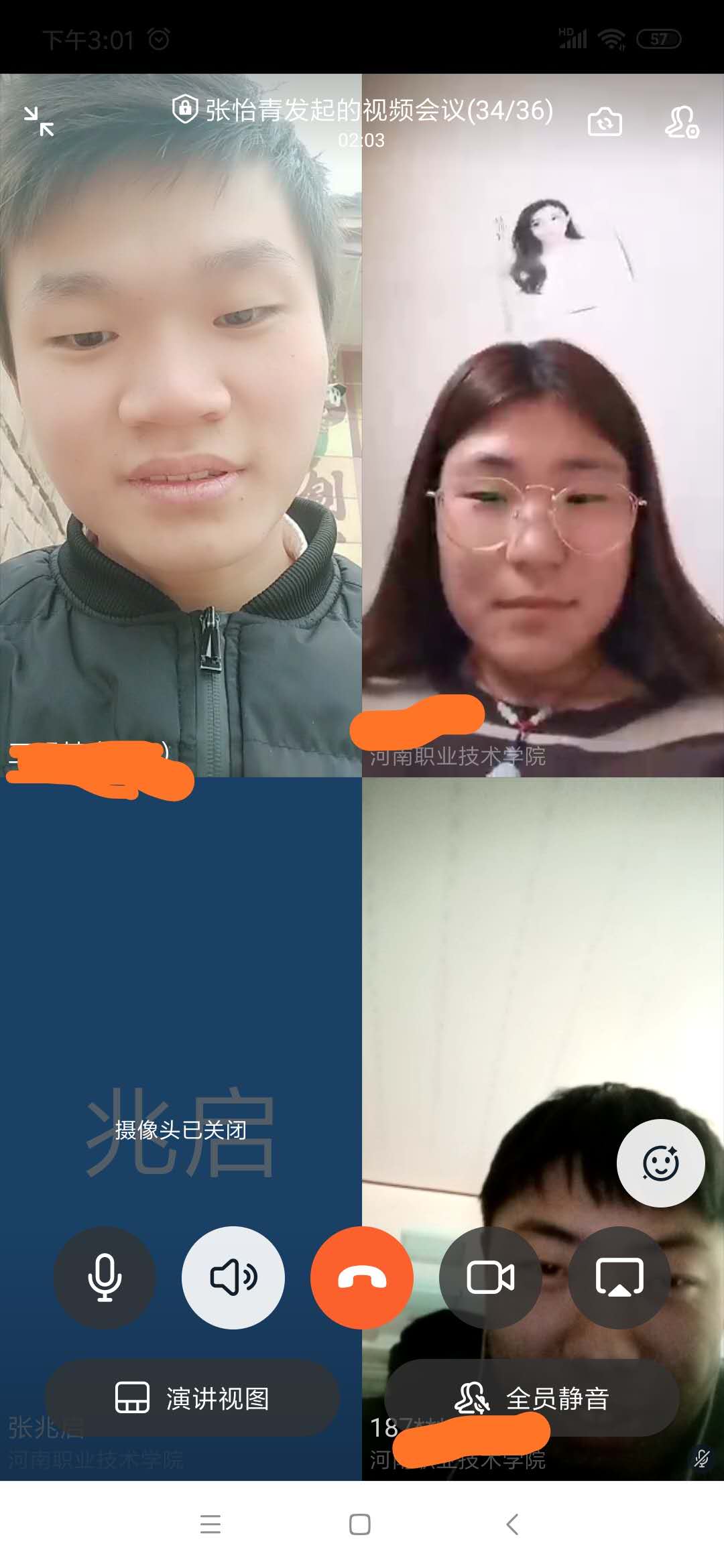 为学习贯彻习近平新时代中国特色社会主义思想和党的十九大精神,深入落实习近平总书记给“青年红色筑梦之旅”大学生重要回信精神,贯彻落实《河南职业技术学院关于举办第七届大学生创新创业大赛的通知》,机电工程学院组织全体辅导员借助钉钉平台给所带班级学生召开以“创新携梦想齐飞,创业与防疫同行”为主题的创新创业大赛动员班会。