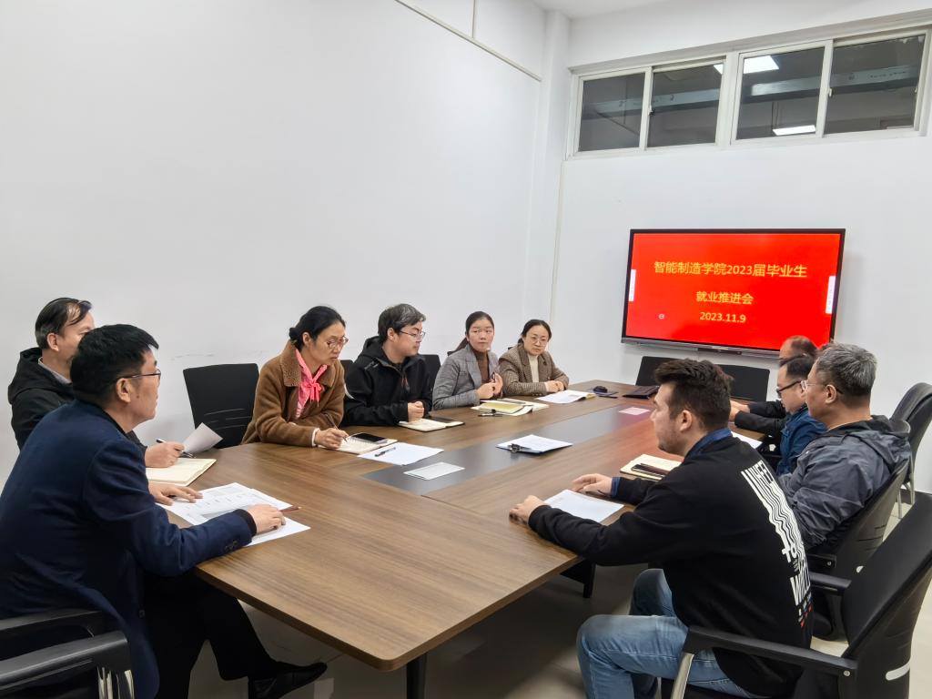 2023年11月9日下午,智能制造学院召开了2023届毕业生就业推进会。党总支书记赵军华、副院长冯金广、就业专干阿尔曼以及2023届未就业学生辅导员和各教研室主任参加了会议。