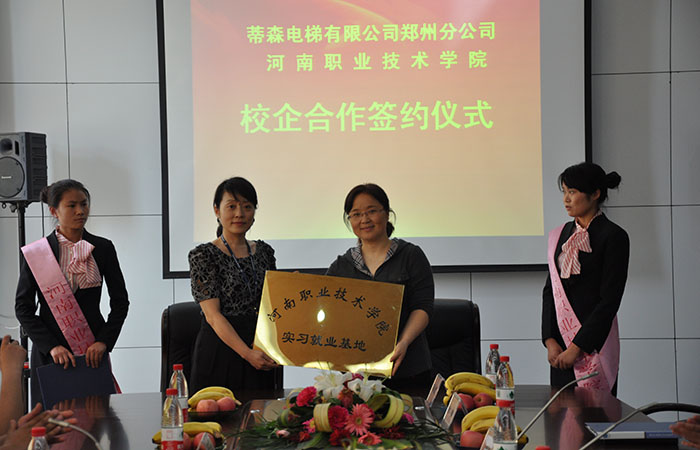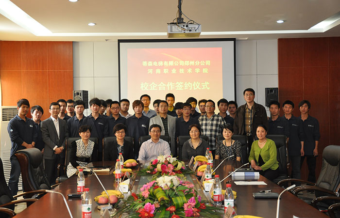 蒂森克虏伯电梯(中国)是蒂森克虏伯电梯集团亚洲/太平洋业务单元下的子公司,为蒂森克虏伯电梯所有的产品系列提供新梯安装、更新改造和维修保养服务。2012年4月蒂森电梯有限公司郑州分公司与我院举行校企合作签约仪式,成为我院实习就业基地,并在我院成立了蒂森冠名班,双方合作进入快速发展、互惠互赢的良性循环轨道。