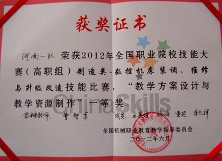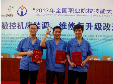 6月26日至27日,在天津机电职业技术学院举行的2012年全国职业院校技能大赛“数控机床装调、维修与升级改造”赛项中,我院选派的学生代表队和教师代表队,凭借扎实的功底、娴熟的技能、良好的素质和团结协作精神,从来自国内的55个参赛队中脱颖而出,分别荣获了本次赛项学生组和教师组一等奖的优异成绩,三位指导老师获得“优秀指导教师奖”。这是继我院参赛学生在获得汽车营销项目团体一等奖后,又一次获得的两个团体一等奖,展示了数控设备应用与维护专业技能,再次为学院争得了荣誉。