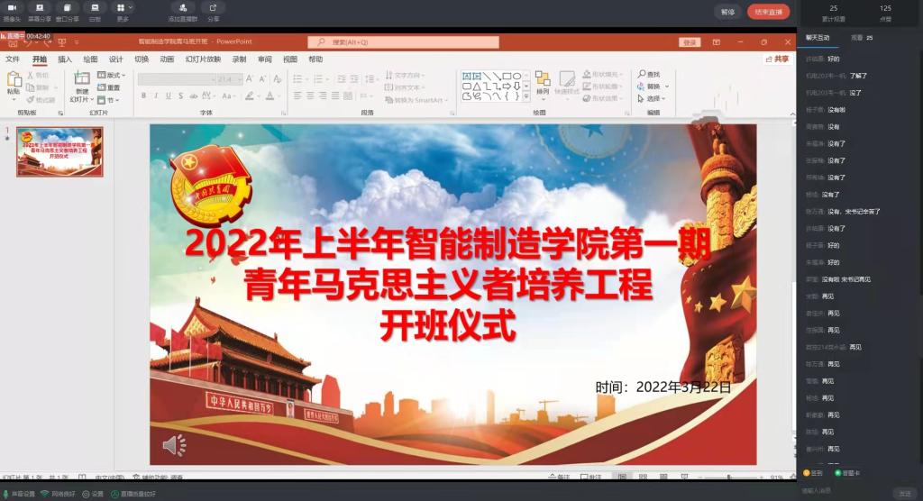 为提高团学骨干和广大团员青年的思想政治素质,在广大青年中着力培养一批具有较高思想政治素养的年轻马克思主义者,按照校团委关于本学期院级青马班开班要求,3月22日智能制造学院团总支召开线上 “青马班”开班仪式。