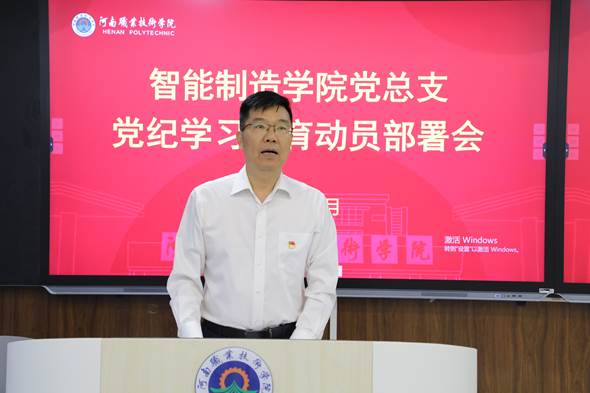 4月15日,智能制造学院党总支在合鼎楼603召开党纪学习教育动员部署会,全面落实中央、省委、省委教育工委和学校党委会议精神,对学院开展党纪学习教育工作进行安排部署。党总支书记赵军华主持会议并讲话,全院42名党员参加会议。