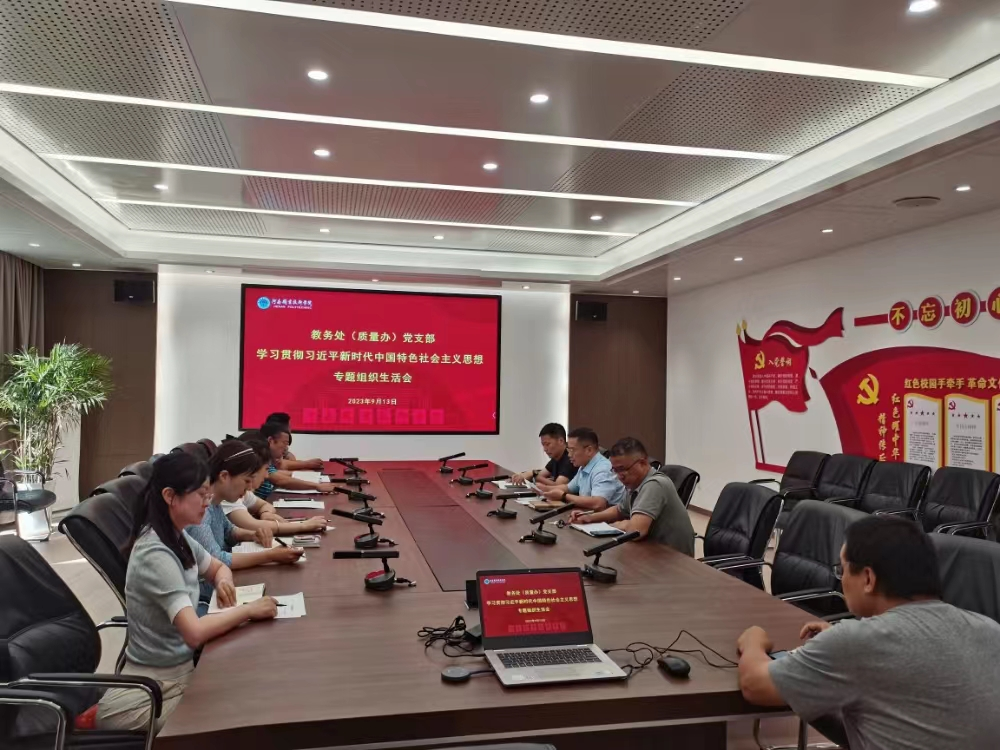 2023年9月13日下午,教务处(质量办)党支部在行政楼党建活动室召开“学习贯彻习近平新时代中国特色社会主义思想”主题教育组织生活会,会议由支部书记李小强主持。