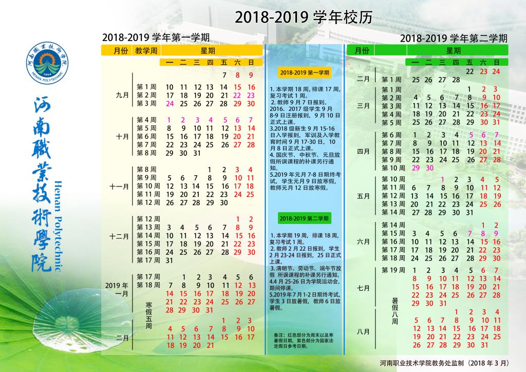 2018-2019学年校历