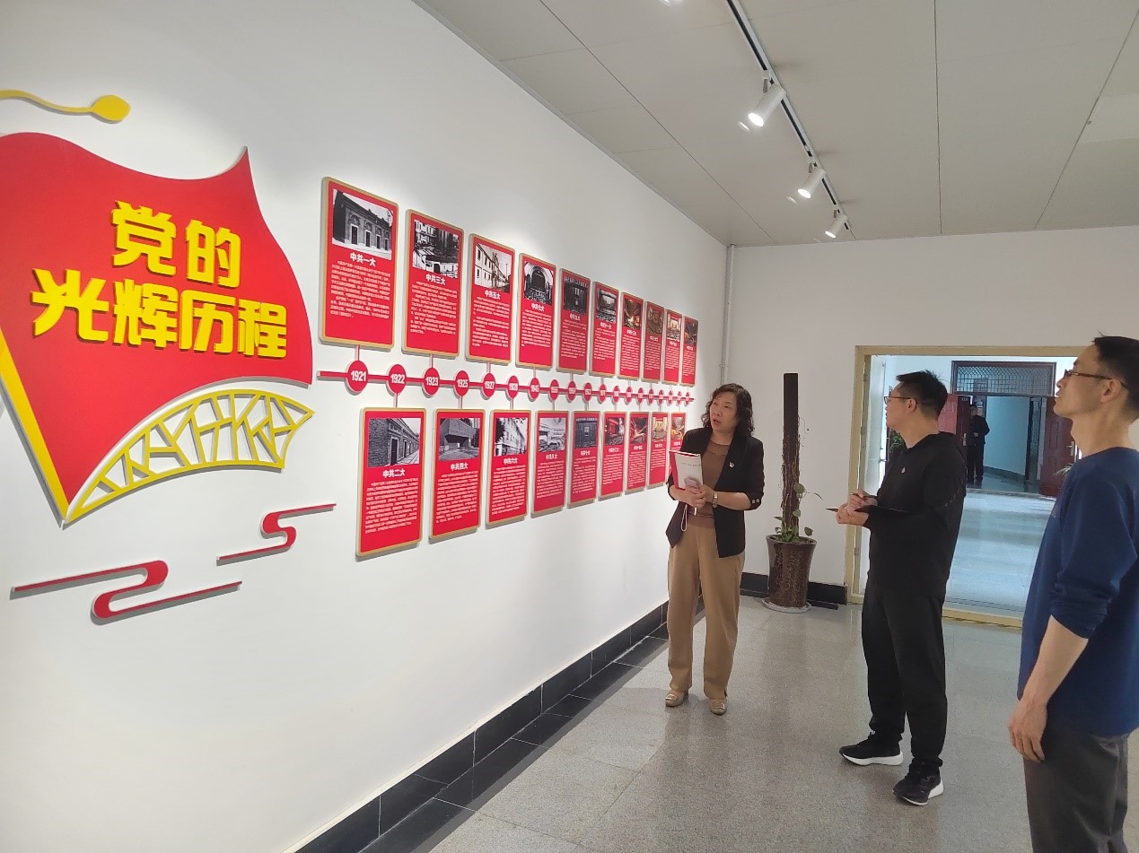 支部党员在王莉娜带领下,参观学院在行政楼大厅布置的共产党光辉历史展。历史展通过珍贵的历史图片,详实的文字,生动展现了中国共产党发展壮大的光辉历程,在百年的光辉历程中,中国共产党团结带领全国各族人民在艰难困苦中奋起、在艰辛探索中前进,完成了民族独立和人民解放的历史任务,建立了社会主义制度,开创了中国特色社会主义伟大事业,创造了中华民族发展史上最辉煌的业绩。王莉娜在现场的党课中指出,党中央开展主题教育,是推动贯彻党的二十大战略部署的有力举措,是统一全党思想意志行动、始终保持党的强大凝聚力、战斗力的必然要求,对于党员同志保持党的先进性和纯洁性,使全党更加紧密地团结在以习近平同志为核心的党中央周围,具有十分重大的意义。