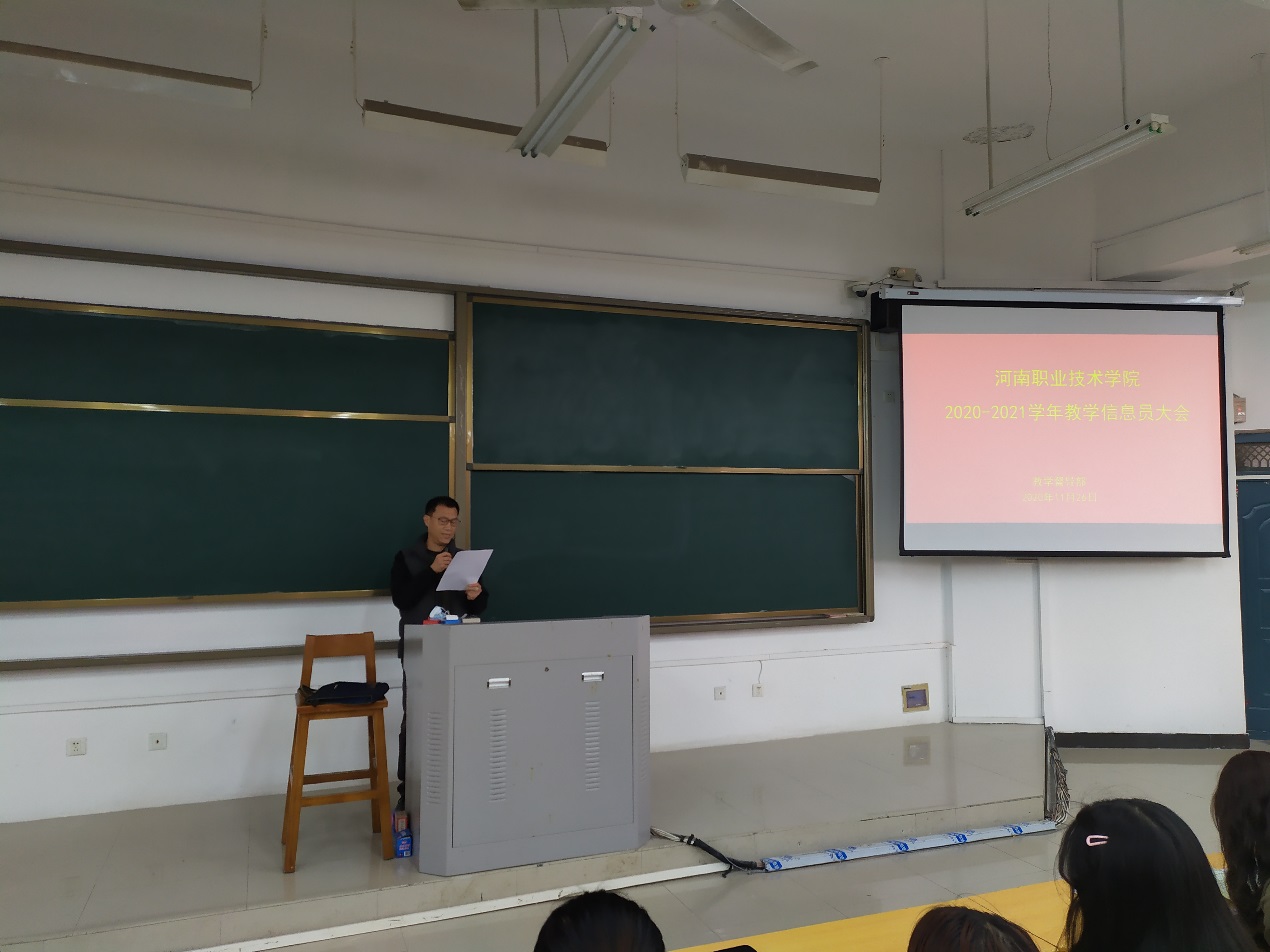 11月26日下午,我院在明理楼1304教室召开2020—2021学年教学信息员大会。教学督导部主任周宗杰出席会议,教学督导部全体工作人员及本学年新聘339名教学信息员参加会议。