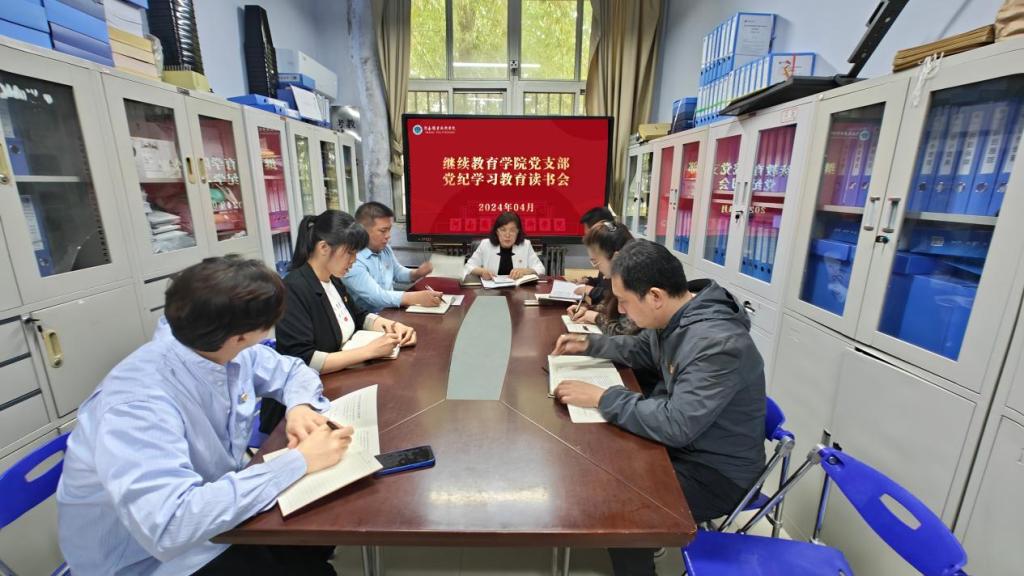 为深入贯彻《中共河南职业技术学院委员会在全校党员中开展党纪学习教育的实施方案》文件精神,落实党支部“党纪学习教育”计划,4月28日上午,继续教育学院党支部在行政楼126开展“党纪学习教育读书会”活动,全体党员参加。