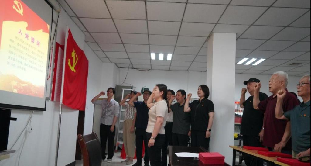 活动伊始,支部党员和“一中社区”60多名党员驻足党旗,重温入党誓词,誓言铮铮,铿锵有力,党徽闪耀,带领大家重回入党之时。