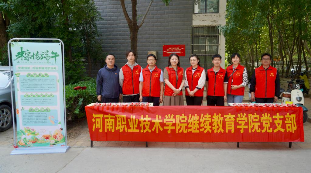 2025年5月29日上午,继续教育学院党支部紧扣深入贯彻中央八项规定精神学习教育目标任务,以“粽情端午・党建领航”为主题,在河职佳苑园区开展主题党日活动,全体党员与河职佳苑居民共同参与,转变工作作风,将学习教育学查改与端午特色活动深度融合,取得良好成效。