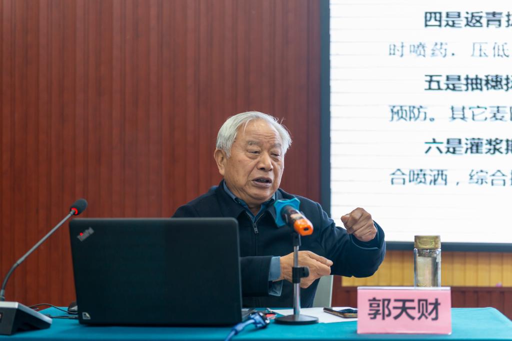 针对传统培训覆盖面窄、理论与实践脱节等问题,学校创新构建“理论讲授+实操模拟+跟踪服务”三位一体的赋能模式。培训特邀荣获2024年河南省科学技术杰出贡献奖的郭天财教授,以《冬小麦优质高产与防灾减损关键技术》为题,用通俗易懂的语言讲解关键栽培技术。课程通过“线上直播+线下实操”同步开展,累计吸引豫、鲁、晋等地近2万人次参与学习,实现优质资源的广泛共享。