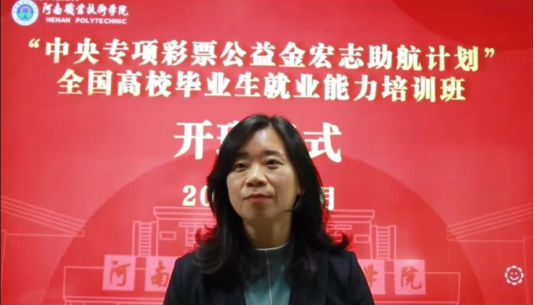 11月6日上午,河南职院第五期中央专项彩票公益金“宏志助航计划”高校毕业生就业能力线上培训班顺利开班,学校招生就业处相关领导出席线上开班仪式并讲话。来自河南工业贸易职业学院的80名学员,和相关管理部门领导、任课教师参加了开班仪式。此次培训时间为11月6日-12月4日,共40课时。