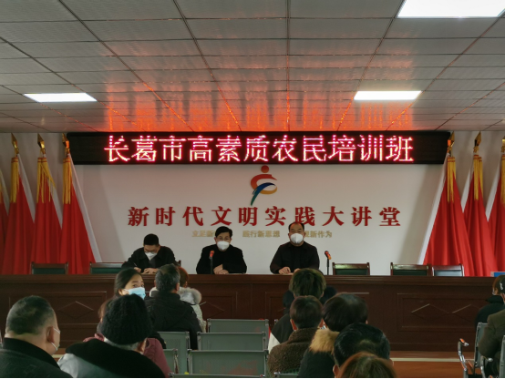 12月9日,河南职院《长葛市农作物种植技术高素质农民培训班》在许昌市长葛市和尚桥镇贾庄社区举行开班仪式,许昌市农业农村局副局长刘旭峰和科教科长胡文增、长葛市农业农村局副局长李辉、长葛市农业农村局科教股长秦关召等相关领导出席了开班仪式,来自长葛市和尚桥镇的农作物种植返乡创业人员50余人参加了本次培训班。