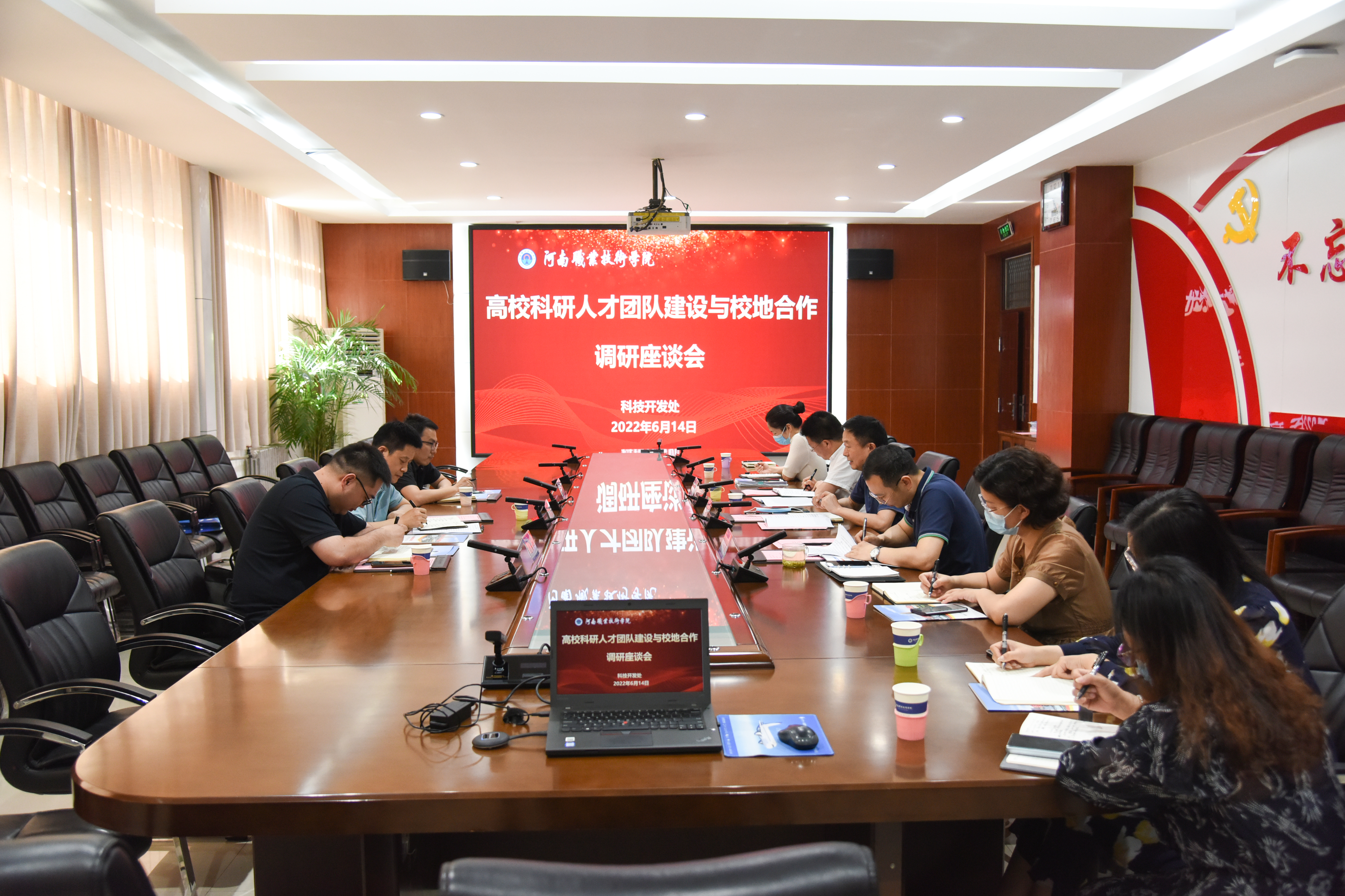 座谈会上,与会人员共同观看了学校国家“双高计划”建设专题宣传片。邬蒙局长说明了此次调研目的是了解校地合作协同创新和科研人才团队建设情况,为孙守刚副省长召开校地合作协同创新座谈会做好前期筹备工作;介绍了中原科技城的创设背景、规划建设、产业聚集、引才政策、落户研究院所、高校科研院所等情况。