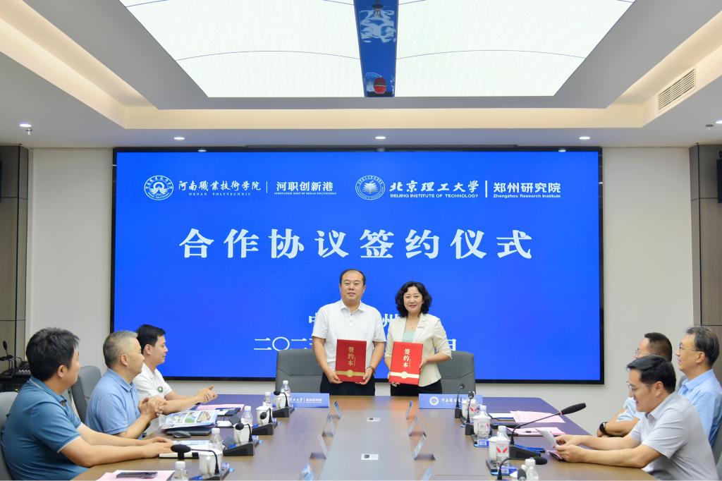 6月23日上午,学校与北京理工大学郑州研究院战略合作协议签约仪式在河职创新港举行。北京理工大学郑州研究院常务副院长柏利、副院长张学智,郑州技术交易市场运营负责人、郑州中原科技成果转化有限公司总经理车中锐,学校党委书记厉励,党委副书记、校长夏新颜出席会议。双方相关部门和科研平台负责人参加会议。校党委委员、副校长任枫轩主持仪式。