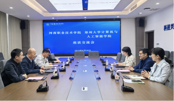9月28日,郑州大学计算机与人工智能学院赵新灿一行5人来校,就促进院校交流、深化科研合作、共谋科教发展新路径开展座谈交流,会议在河职创新港302举行。校党委委员、副校长任枫轩出席座谈会。现代信息技术学院党总支书记、院长李纪云,科技开发处副处长、河职创新港负责人姬虹参加交流。座谈会由姬虹主持。
