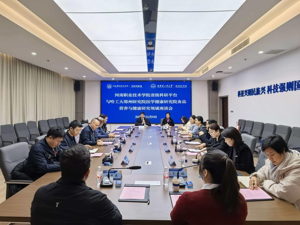 12月8日上午,学校与哈工大郑州研究院医学健康研究院在河职创新港302会议室举行食品营养与健康研究领域科研合作座谈会。哈工大郑州研究院科研管理与实验设备部部长苑景坤一行6人到访交流。校党委委员、副校长任枫轩出席会议,科技开发处、食品工程学院相关负责人参会。
