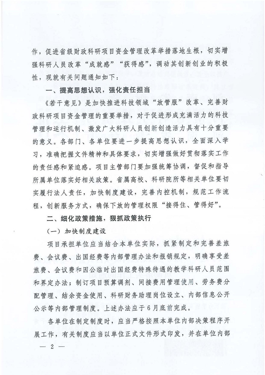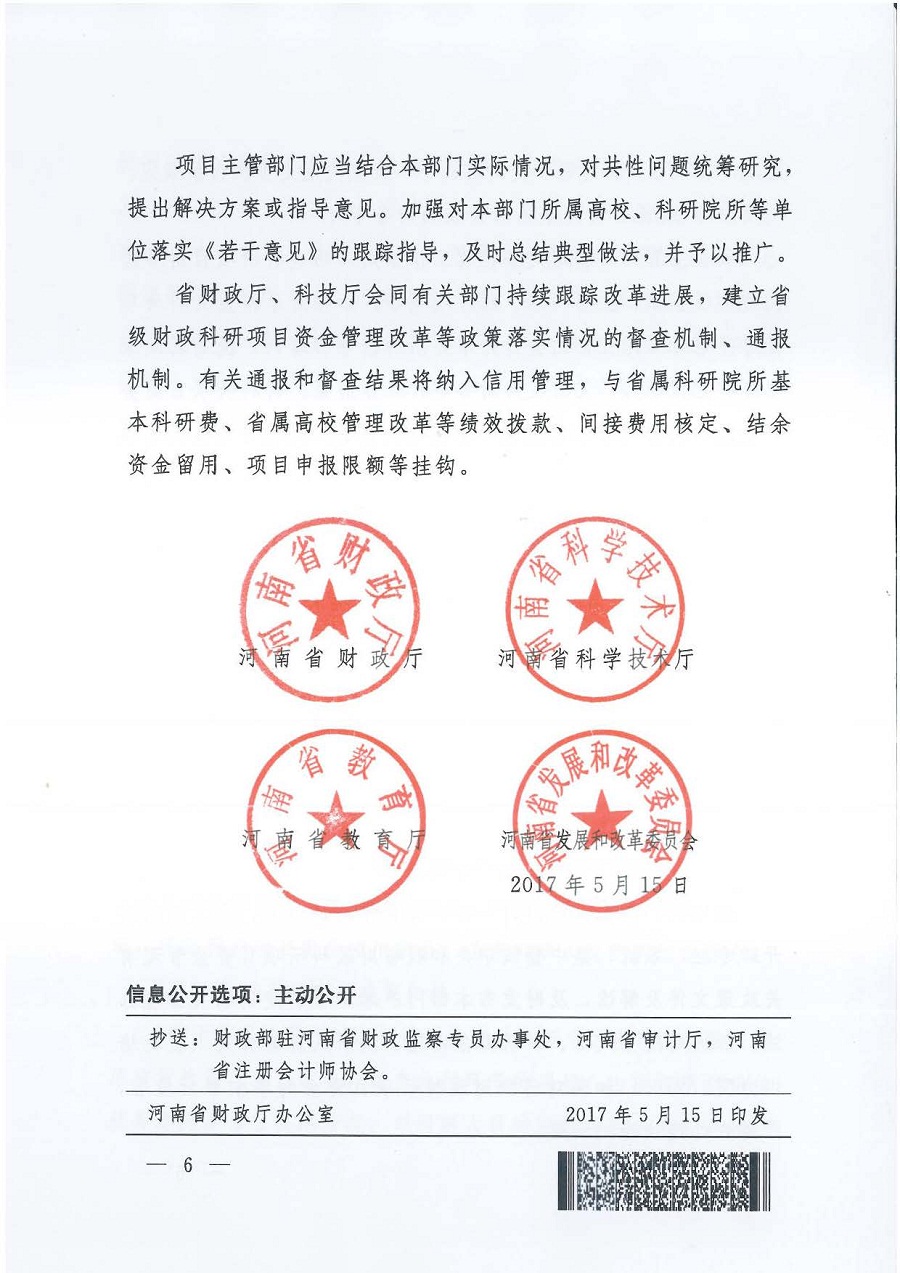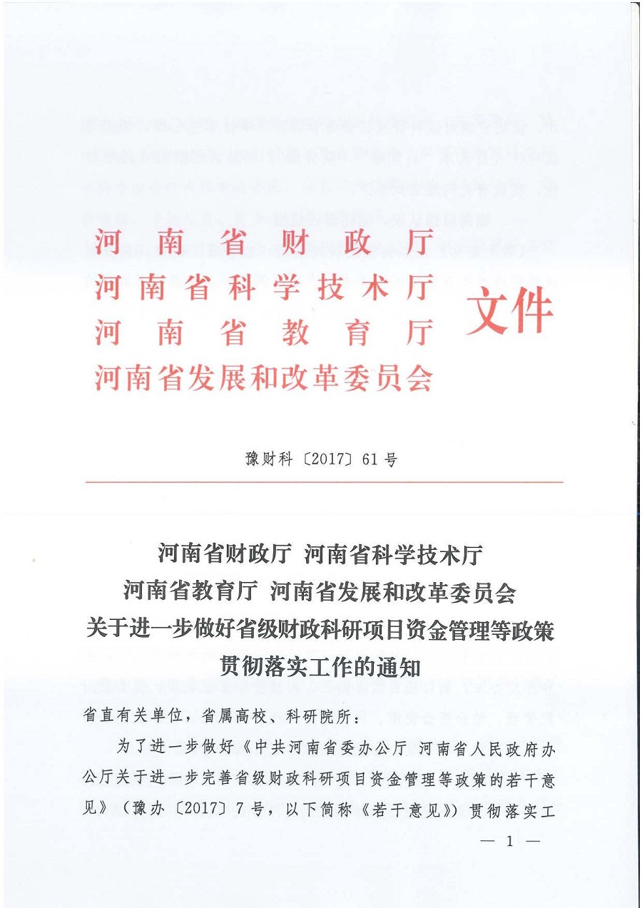 河南省财政厅河南省科学技术厅河南省教育厅河南省发展和改革委员会关于进一步做好省级财政科研项目资金管理等政策贯彻落实工作的通知