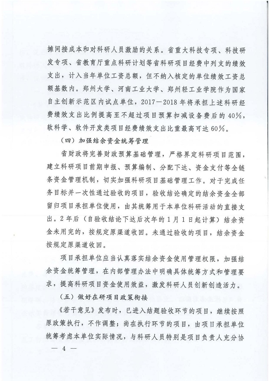中共河南省委办公厅河南省人民政府办公厅关于进一步完善省级财政科研项目资金管理等政策的若干意见