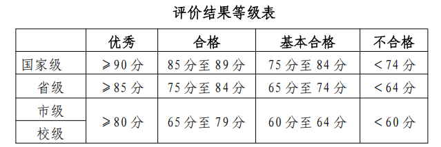 第十四条评价结果分为优秀、合格、基本合格和不合格四个等级(见下表)。