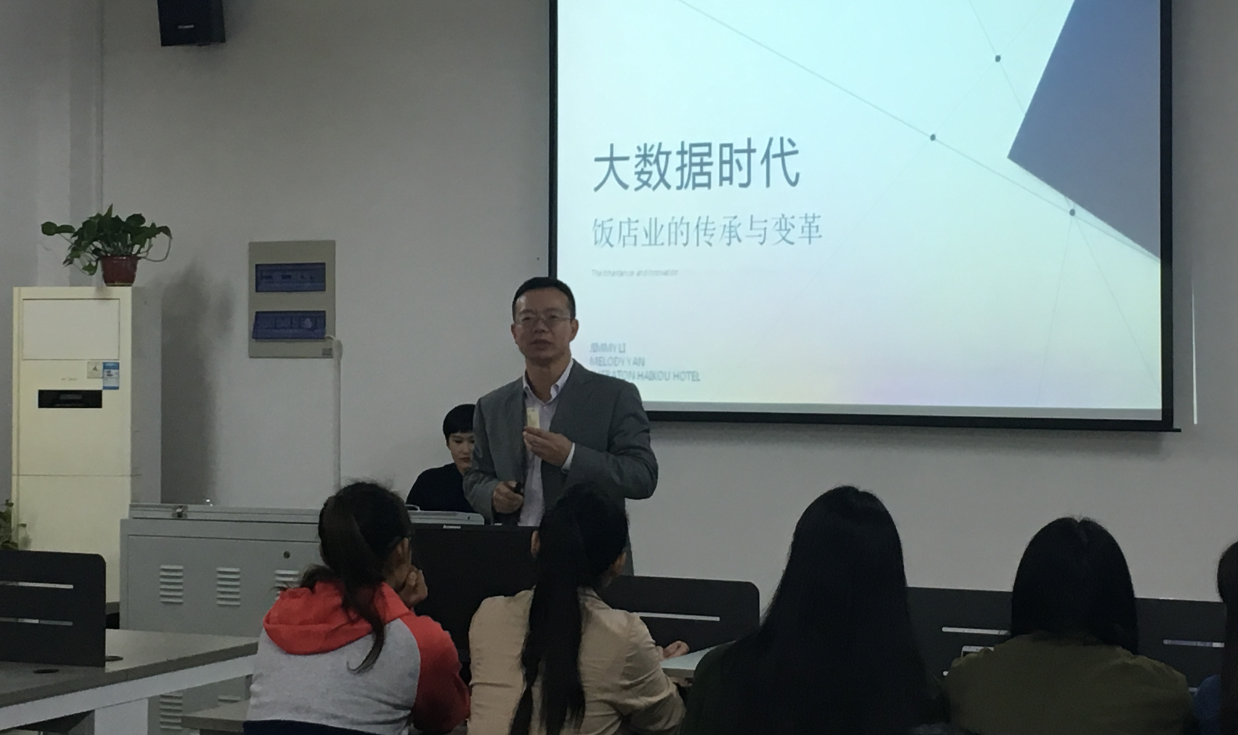 11月9日下午,海口喜来登温泉酒店总经理李吉应邀为旅游管理系师生作了题为“大数据时代饭店业的传承与变革 ”的专题讲座,我系近三百名师生齐聚一堂,认真地聆听了讲座。讲座由系副主任李岚主持。