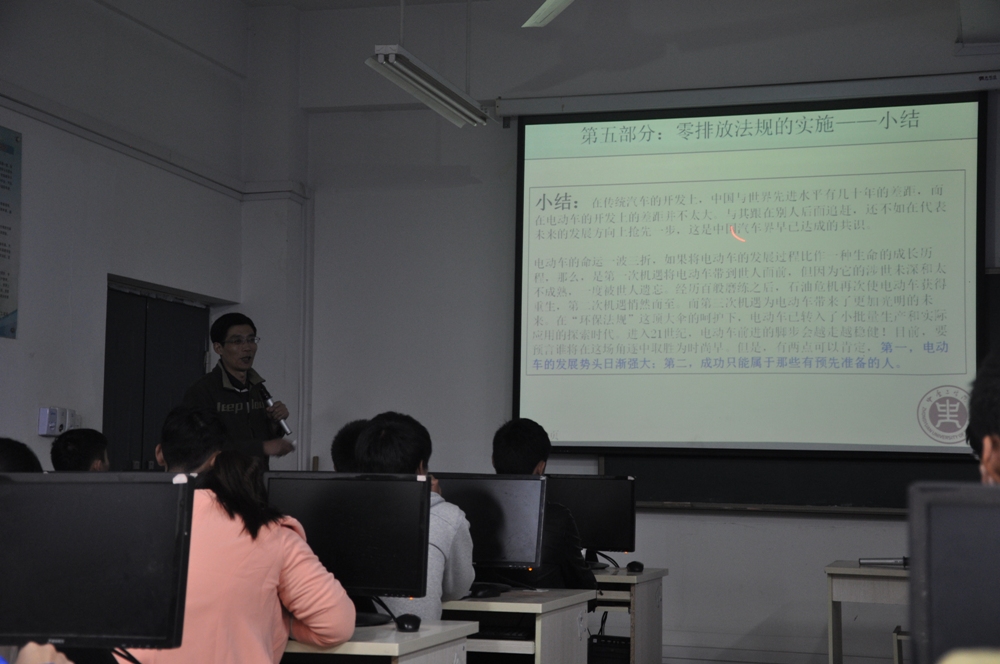 牛博士分别从早期的电动车、电动汽车的黄金时代、电动车的衰落、电动车起死回生、零排放法规的实施、纯电动车和燃料电池车并驾齐驱、电动车发展的展望等方面分析电动汽车的发展历程和应用前景。与会师生对我国电动汽车发展有了新的认识,也极大地增强了对我国汽车产业的信心。